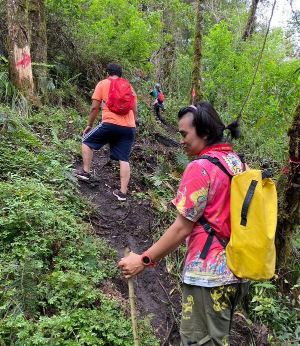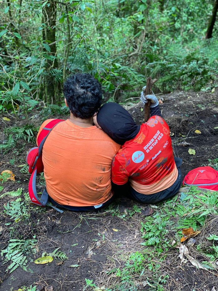 Saya termasuk kategori ‘pasien’ dalam pendakian ini. Yaitu orang lambat berada di belakang wkwkwk. Ada 2 penjaga nya sebagai penyapu. Terima kasih Om Komeng dan Om Dipa yang menjaga saya.