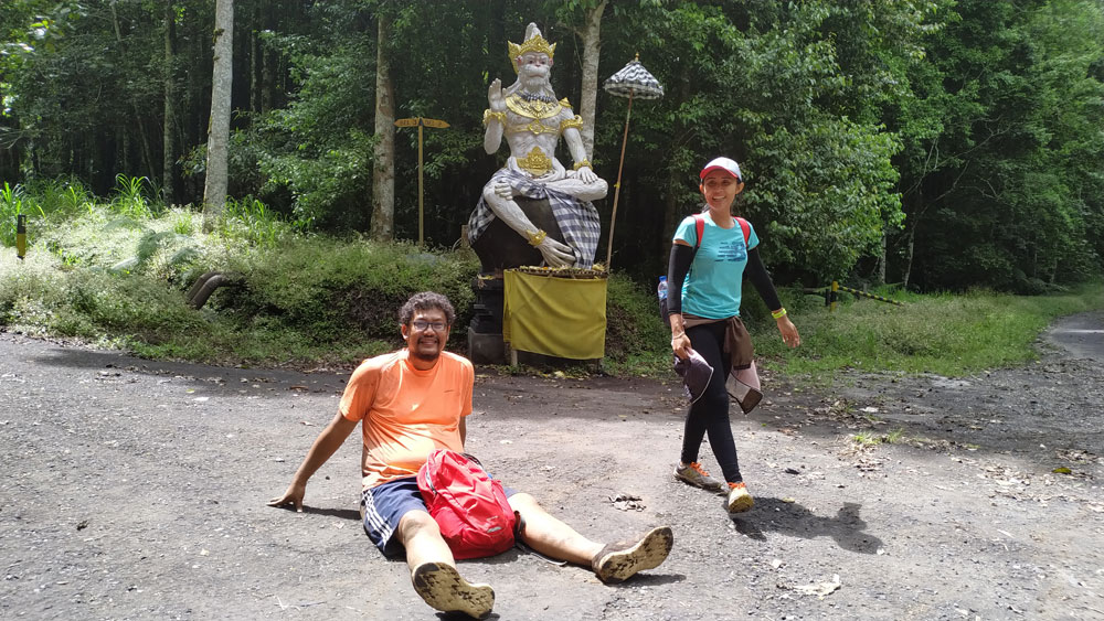 Perjalanan mulai masuk kawasan hutan Geothermal yang memang diberi pagar. Jalan mendatar kurang lebih 1 km. Kemudian ketemu pertigaan yang ada patung hanoman, kami berhenti. Karena disitulah titik mulai masuk naik ke Gunung Pohen.