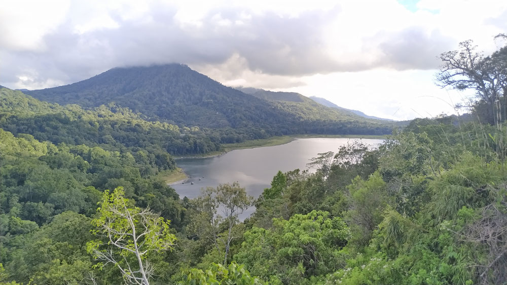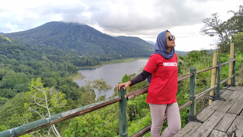 Bonus hiking yang saya dapatkan adalah oksigen yang segar. Makanya saya suka beri tagar #WisataOksigen. Kemudian suara angin yang dihasilkan dari gesekan dedaunan, mendesis dan menderu. Suara macam-macam burung dan pemandangan danau beratan yang eksotis! Plus ini jangan ditiru ya: Bonus prosotan kayak setir mobil bom-bom car wkwkwk. Ini terjadi pas turun gunung dimana saya pakai sepatu yang suka selip dan jalan becek licin, daripada saya jatuh maka sambil duduk saya meluncur kebawah, dengan alas sepatu ciptakan jalan yang mulus lusss. Padahal itu buat jalur makin licin hahaha. Duh, maaf ya.