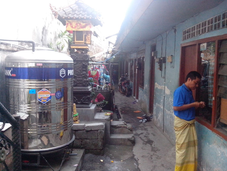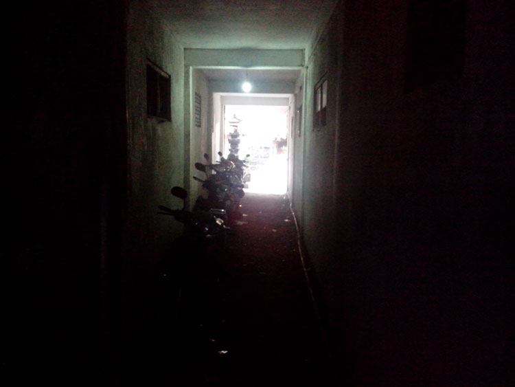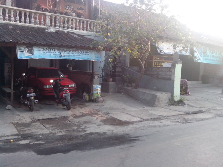 Lalu belok kanan dan berjajar kamar-kamar kos yang terlihat. Kuberjalan lurus sambil terlihat jemuran disebelah kiri, kanan adalah kamar-kamar kos, didepannya ada yang dipakai tempat cuci baju, piring dan sekedar tempat untuk nongkrong bersenda gurau.