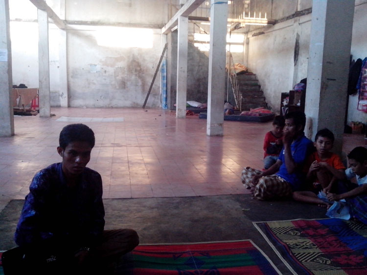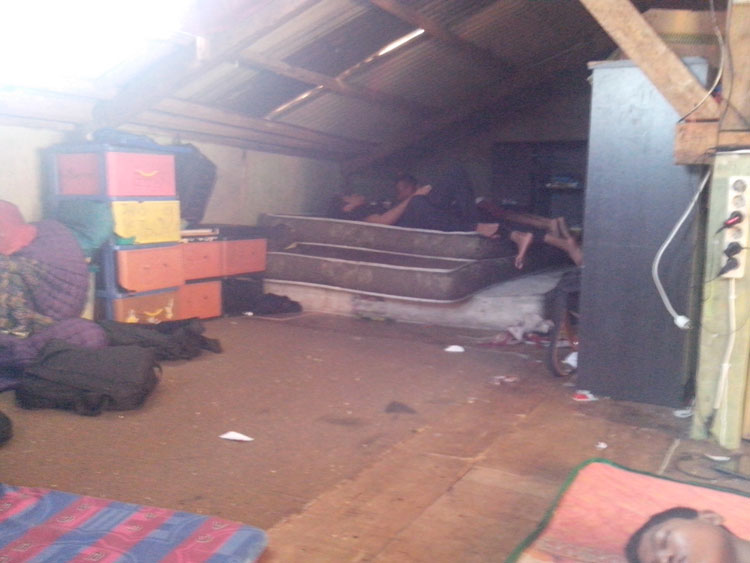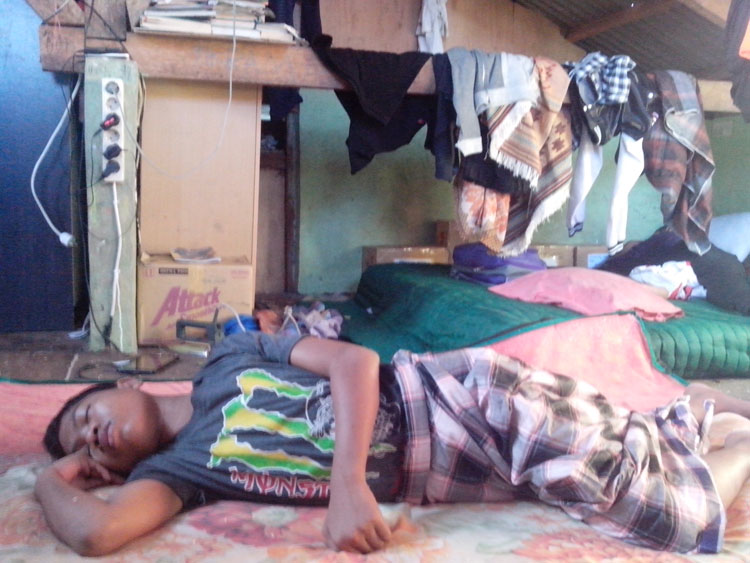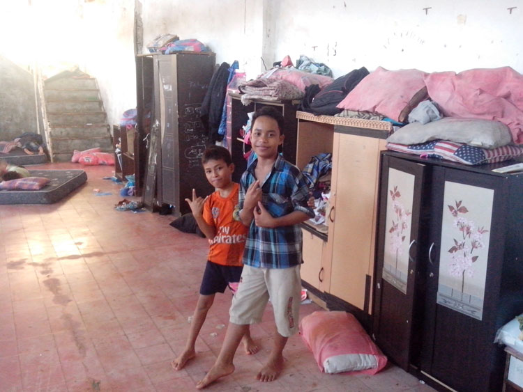 Kuberjalan ke atas plafon yang kata pengurus itu lantai dua. Terlihat seorang bocah didepan mata pulas menikmati tidurnya. Langsung dibawah atap seng ada kasur-kasur tidur, slempangan baju, lemari plastik.